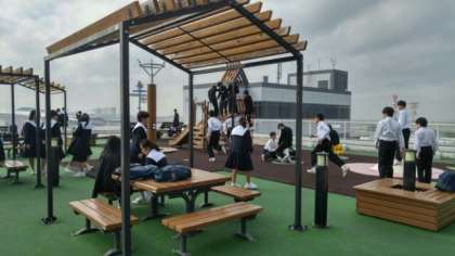 思い思いの場所でお弁当を広げています。