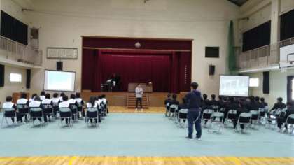 3月8日(金)5,6限、3年生は卒業式の練習をしました。写真は、先生からの説明を聞いているところです。このあと校歌斉唱もあります。