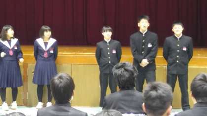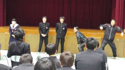 次は、「大声コンテスト」の変形で、「同時に大声で叫んだ単語を、誰が何を言ったか当てる」というゲームです。先生も指名されて飛び入りで参加しています。