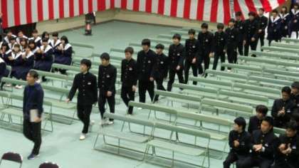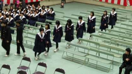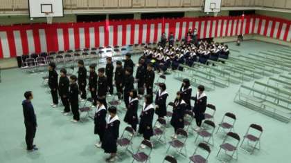 3年1組の入場の様子です。担任の先生の先導で入ってきました。