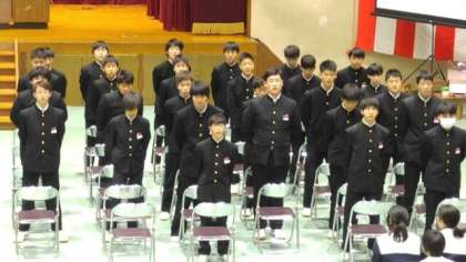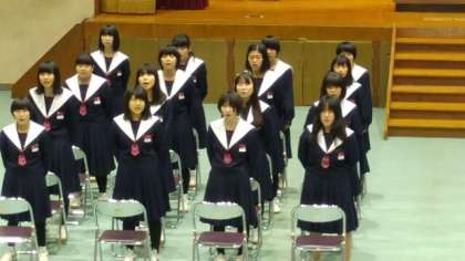 3年生による「卒業の歌」です。「あなたへ 旅立ちに寄せるメッセージ」を歌います。明日も47期生のきれいなハーモニーを会場いっぱいに響かせてください。