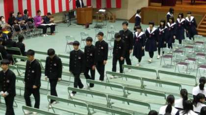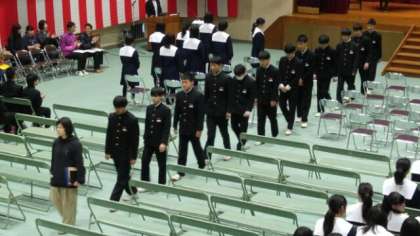 明日は、気温は今日くらいの低さですが、風も和らぎ、晴れになりそうです。開式は、10時。保護者の方は、9時40分までにご着席くださいますようお願いいたします。