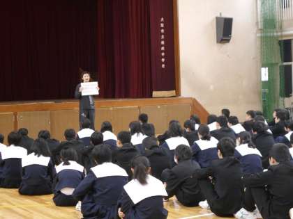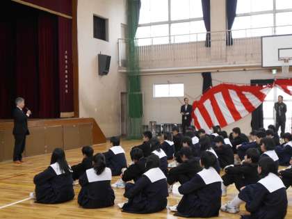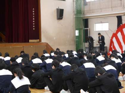 生徒指導主事から春休みの過ごし方などの諸注意がありました。「被害者・加害者にならない」ということや携帯電話、SNSの使い方などに気を付け、楽しい春休みを過ごしてください。