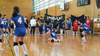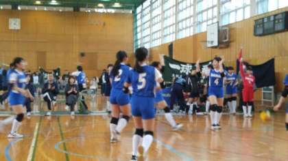 相手チームの反撃もあり、24−21までもつれましたが最後は相手のサーブがオーバーし(写真3枚目)、25−21で勝利しました。これで1位2位リーグは3勝2敗となりました。