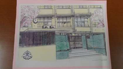 なお、写真2枚目は本校美術部員が4月のカレンダー用として描いてくれた本校正門のイラストです。新入生の皆さんは、明日元気にこの正門を通ってください。自転車でお越しの方は駐輪場はグランドに設営していますので西門にお回りください。明日は晴れる見込みですが気温は今朝より低くなりそうですのでよろしくお願いします。