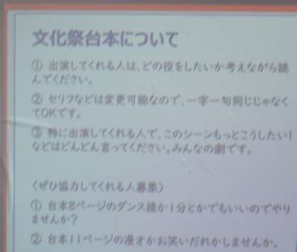 3年生は文化祭の台本の読み合わせをしています。