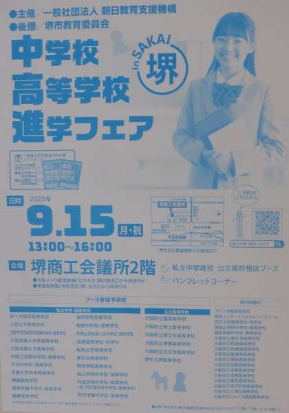 ※詳細は⇒中学・高等学校進学フェアin堺までご確認ください。