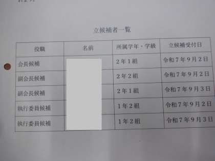 昨日、生徒会選挙に立候補する生徒が決まりました。