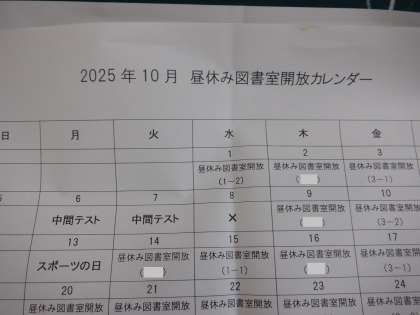 図書室開放の予定です。