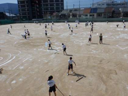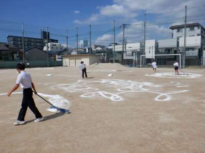 体育大会に向けて、部活動生徒を中心に「にがりまき」をしました。