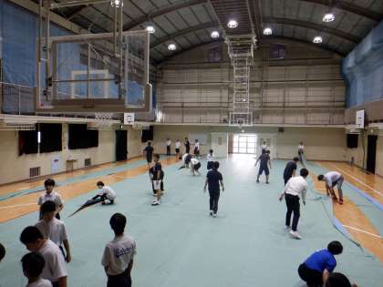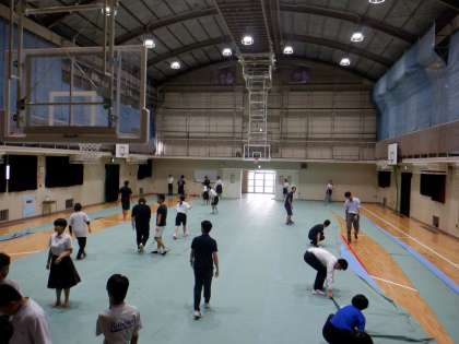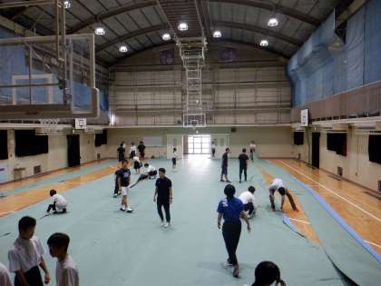 朝早くからバスケットボール部や柔道部の部員が会場設営を手伝ってくれました。本当に、ありがとうございました。