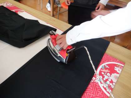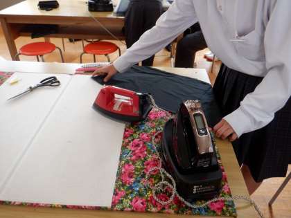 アイロンをかけたり、ミシンを使ったりして作成中です。