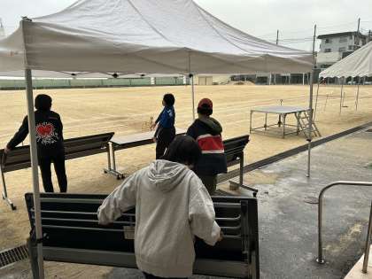 雨のため延期になった体育大会の臨時対応を、早朝より教職員で行いました。