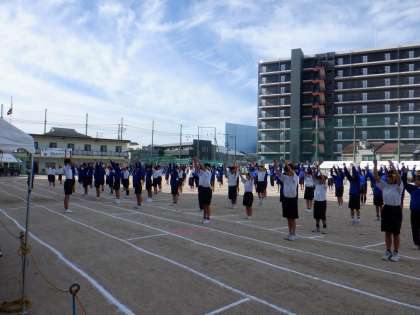 ・応援上の注意・選手宣誓が終わり、ラジオ体操です。