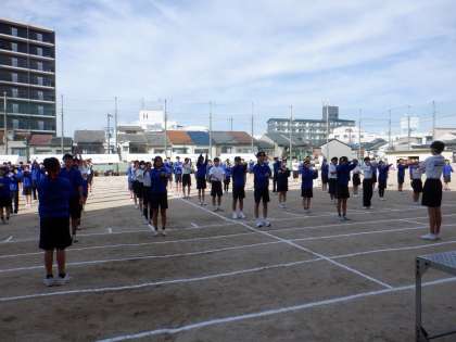 開会宣言・国旗校旗掲揚・校歌斉唱・学校長挨拶・競技上の注意