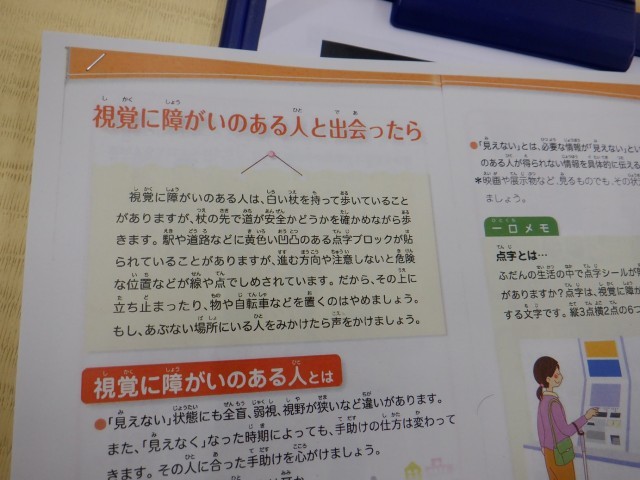 昨日、3年生が西成区社会福祉協議会の方にきていただき、視覚障がいについて学習しました。