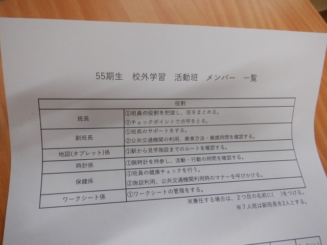各クラスで、班分けおよび施設の周る順番を決めました。