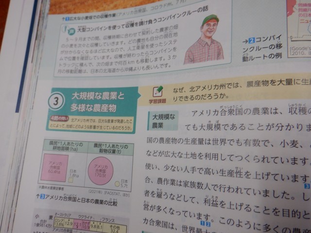 「アメリカ合衆国の農業」について学習しています。