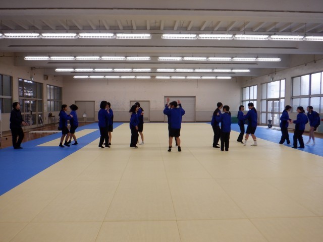 女子はカウントとリズム遊びを行っています。