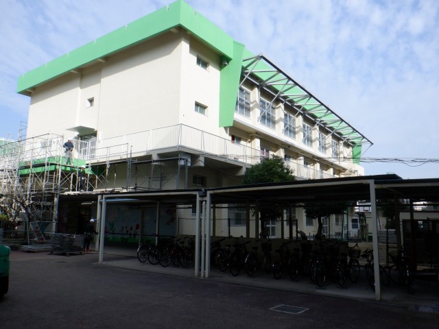 夏休みの入る時期から半年間かかった体育館の「防水・塗装工事」の終わりが近くなっています。
