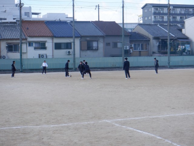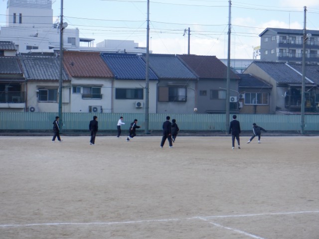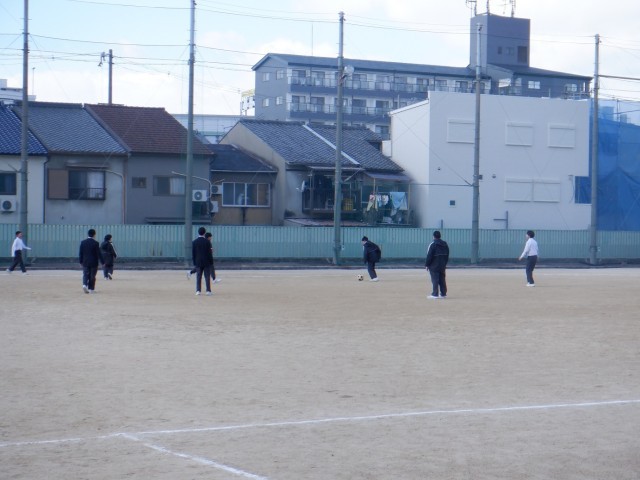 お昼休みに、1年生が寒い中元気にサッカーをして遊んでいます。