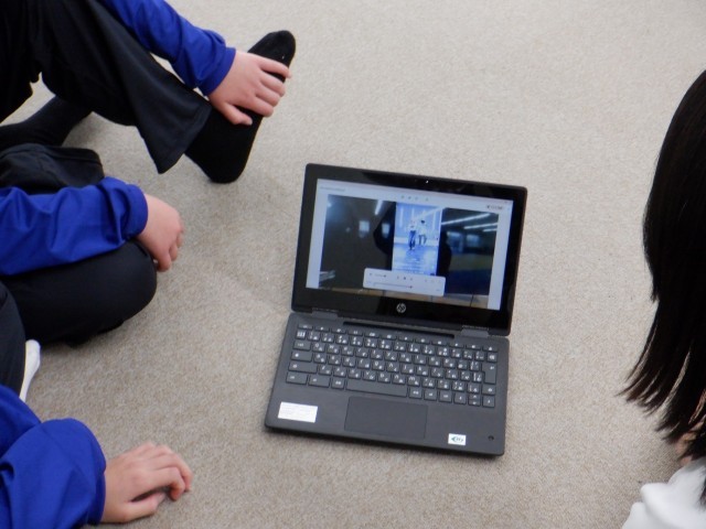 学習者用端末でダンスの振付を見ながら練習しています。