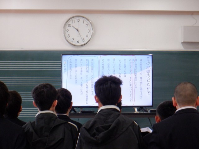 1年2組は音楽の授業です。