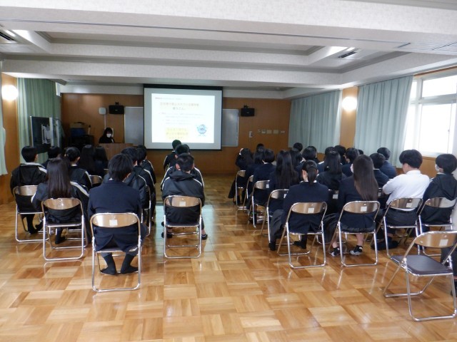 2年生を対象に薬剤師さんに来ていただき、「薬物乱用防止教室」を開催しました。