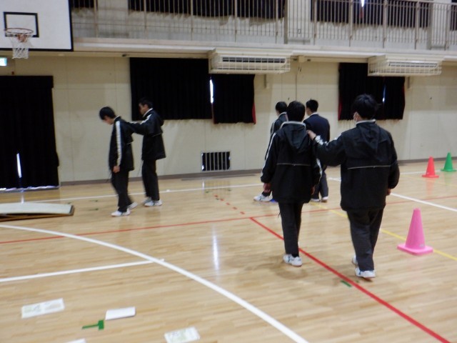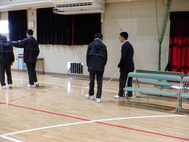 白杖・手引き体験の様子です。