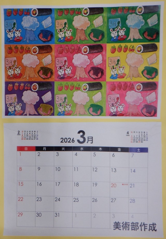 美術部作成のカレンダーです。