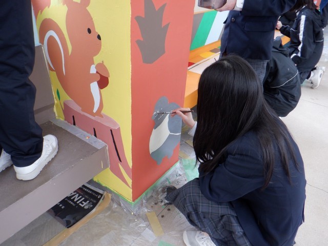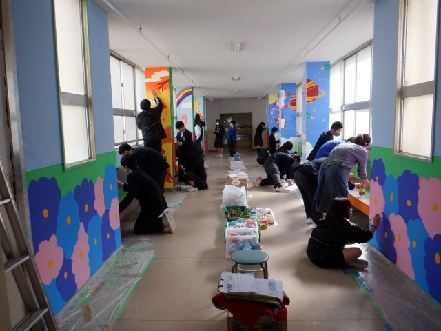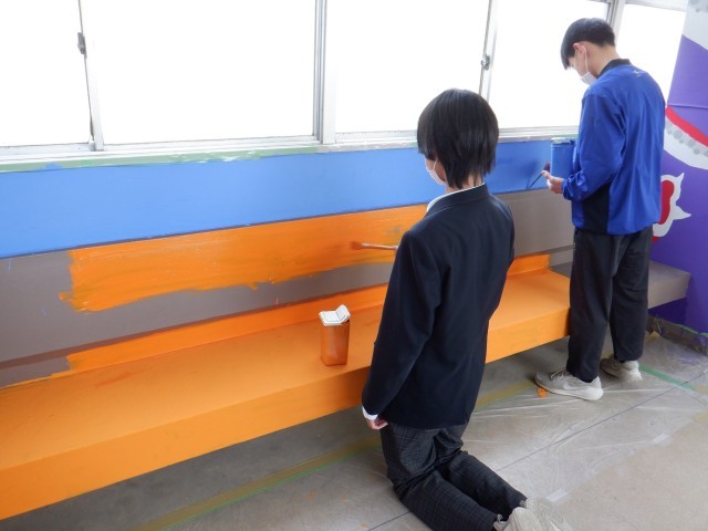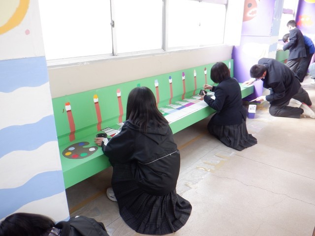 引き続き2年生が壁画を作成しています。