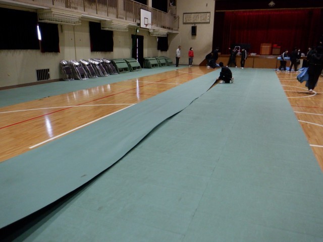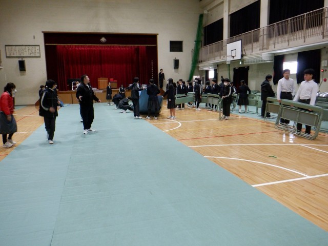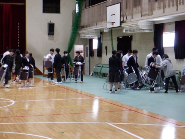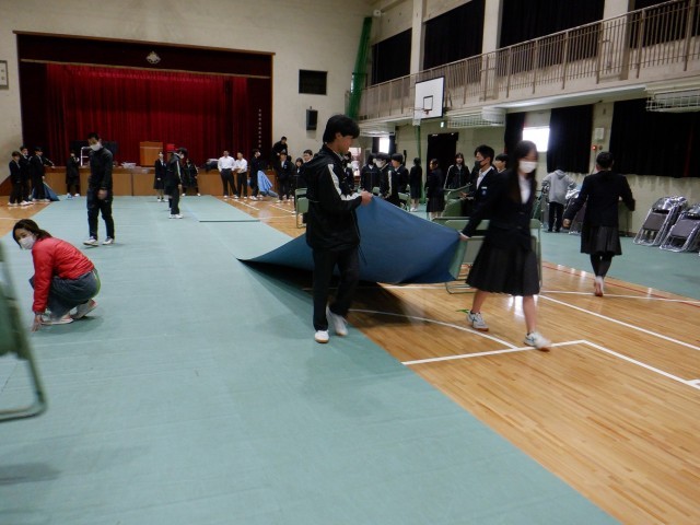 2年生が卒業式の練習のため、シートやいすの設営をしてくれました。