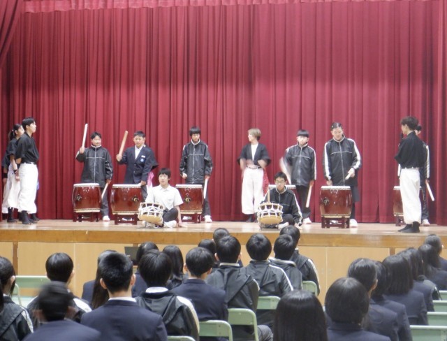 1年生の和太鼓体験の様子です