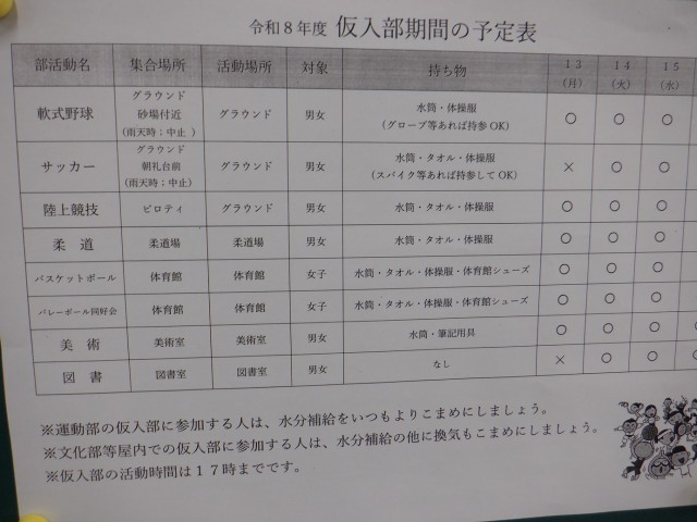 今日から4日間部活動の仮入部期間になります。