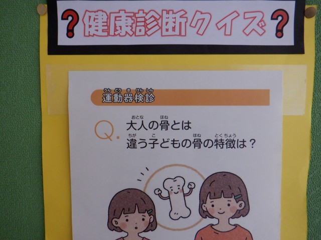 健康診断クイズを、職員室前のボードに掲載しています。