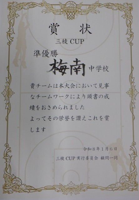 女子バスケットボール部が冬季休業中の大会で準優勝しました。