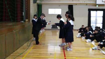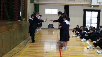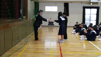1月28日(月)、全校集会で優勝した2年2組と個人で男女ごとに上位3人ずつの表彰を行いました。