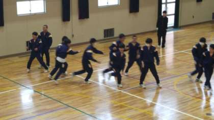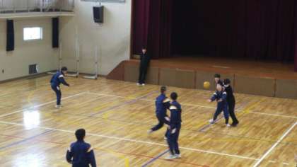 男子は、1組が強いようです。最終的に当てられてコート外に出ている数が2人−8人となり数の少ない1組男子Aチームの勝ちとなりました。