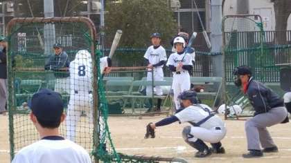 惜しい当たりもありましたが得点を奪えず、結局2−9で敗戦となりました。しかし、ピッチャーは全てのアウトのうち半分以上を占める12奪三振の見事な投球を見せてくれました。勝てませんでしたが、選手一人一人が持てる力を発揮した試合であったと思います。今後も一丸となって勝利を目指して頑張ってください!