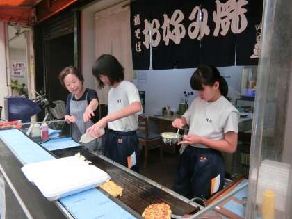 写真は、「喫茶サン」さん、「古林工業」さんでの活動の様子です。真剣な表情が見られます。