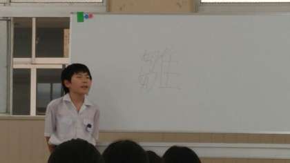 2年生では、1年生のときの「1分間スピーチ」を発展させ、「1分半スピーチ」になり、テーマは「私の好きな漢字」、自分の好きな漢字について話します。