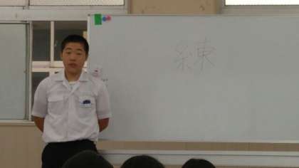 昨日は、7人のスピーチがありました。一人目二人目が選んだ漢字はそれぞれ「楓」、「大」。選んだ理由は、「自分の名前に使われているから」とのことでした。三人目は、「尺」。なぜ?と思いましたが、「尺」につぎたしてオリジナルのキャラクターを誕生させていました。すごい発想ですね!