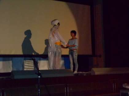 空を飛ぶシーンを影絵で工夫して見せてくれました。