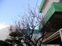体育館前の梅が咲き始めました。