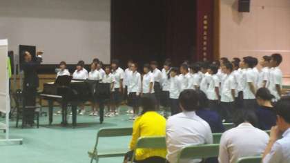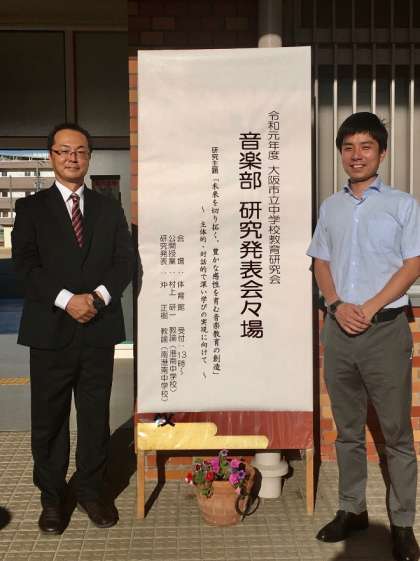 内容は港南中学校の村上研一教諭による1年生の歌唱領域の公開授業に続いて、南港南中学校の沖正樹教諭による「小中一貫校としての小学生とのかかわり」と題しての研究発表、参加教員での研究協議、最後に大阪教育大学 特任教授 田中龍三先生からの指導講評でした。