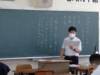 前回と同様にA班では、1年教科書「あなたはすごい力で生まれてきた」の