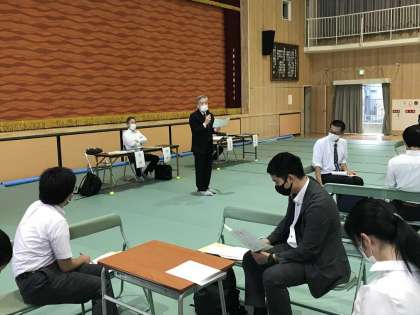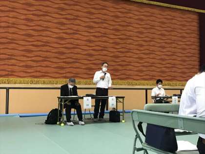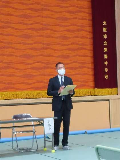 副部長の土肥先生(文の里中 校長)のあいさつの様子です。