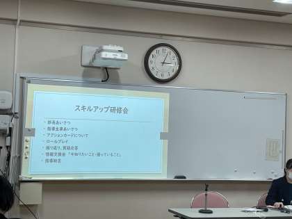 令和6年1月23日(火)15:30〜 天王寺中学校にてスキルアップ研修会を開催しました。「アクションカードを使った救急体制」を確認し、食物アレルギー発生時のロールプレイをしました。その後、振り返りと情報交換を行いました。