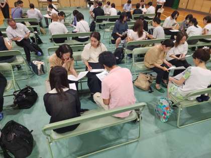 第二部では少人数のグループによる研究協議を行いました。研究協議の場では情報交換に加えて各自が持ち寄った普段使用している教材の交換が行われ、日々のお互いの実践を共有し合うことができ、有意義な時間を過ごすことができました。
