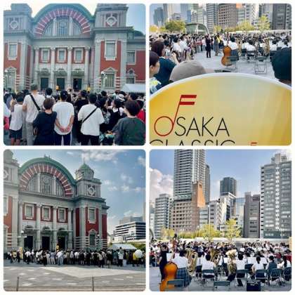 令和6年9月8日(日)大阪クラシックが始まりました。大阪クラシック2024特別企画「Nakanoshima CLASSIC DAY」に今津中学校吹奏楽部、菫中学校吹奏楽部、東陽中学校吹奏楽部が出演しました。最初に1・2年生の合同演奏、各学校の単独演奏、3年生の合同演奏を行いました。青空の下、保護者はじめ市民の沢山の皆様に鑑賞いただきました。
